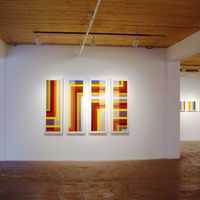 Première de mes grandes série, l'expo Après le désert... présenté à la Galerie Art Mûr (Montréal) avait pour intention d'associer chaque tableau aux villes et aux paysages du Maroc visité. Chacun d'eux a sa couleur et son motif géométrique. Villes et paysages se sont ainsi transformés en zelliges aux tracés régulateurs d'une simple ligne qui traverse le tableau.